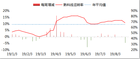 1-8月份全國(guó)熟料庫(kù)容比平均值為59%,同比上漲3.1%,且僅有在3月份前后全國(guó)水泥庫(kù)存實(shí)現(xiàn)負(fù)增長(zhǎng),之后受市場(chǎng)需求提升等因素影響,庫(kù)存持續(xù)提升,截止7月底全國(guó)熟料庫(kù)存水平達(dá)到7成左右,也預(yù)示著水泥市場(chǎng)下行壓力達(dá)到最大。